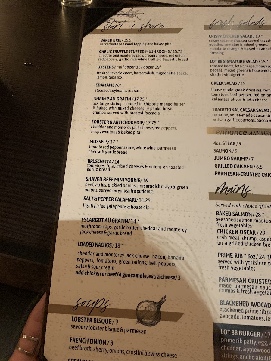 Welcome to Lot 88 Steakhouse & Bar, a premier dining destination located in the heart of Thunder Bay. Known for its vibrant atmosphere and exquisite menu, this steakhouse offers an unforgettable culinary experience. Their selection features premium cuts like the 7oz. Filet Mignon and the unique Steak on a Rock, allowing you to customize every bite to your liking.